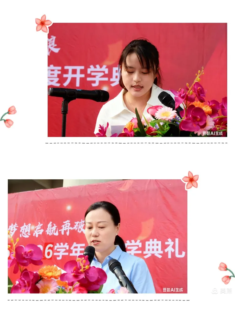 新教师代表刘华影老师满怀热忱许下承诺:以匠心耕耘讲台,以爱心浇灌成长,与铁中同频共振;高三教师代表沈岩老师字字千钧,以谆谆教诲激励学子:以知识为刃、以毅力为甲,向着理想披荆斩棘。他们的誓言,是责任的承诺,更是明灯的点亮,为学子照亮求知与成长的征途。