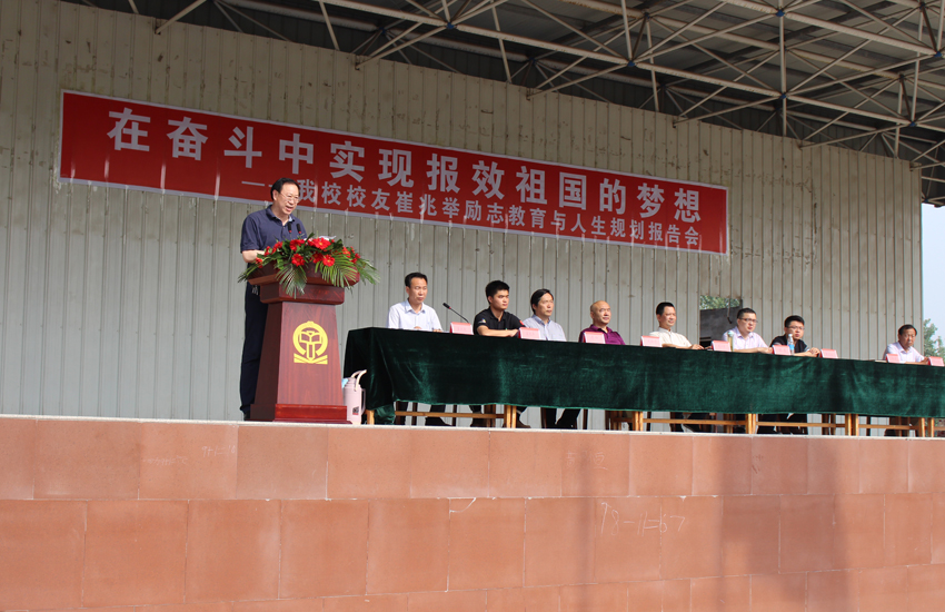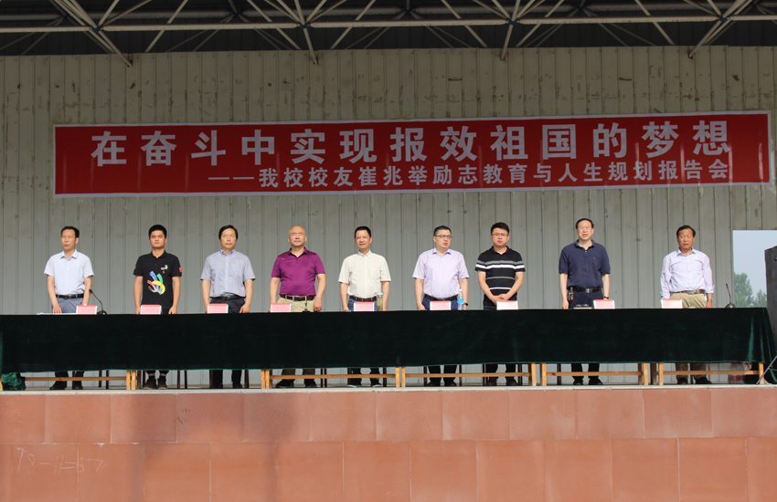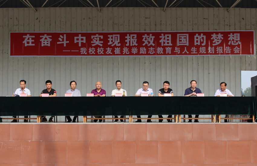 在这骄阳似火,麦收大忙,高考正酣的盛夏六月,我校高中部隆重举行我校校友崔兆举励志教育与人生规划报告会,报告会的主题为“在奋斗中实现报效祖国的梦想”。
