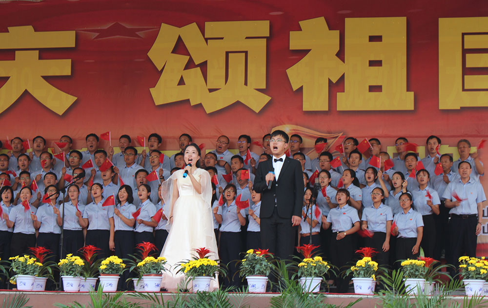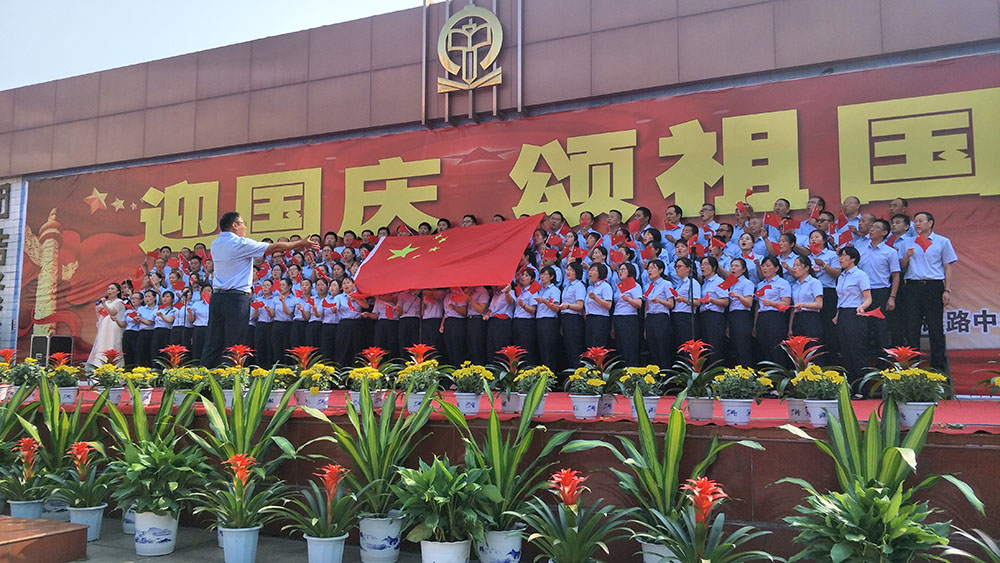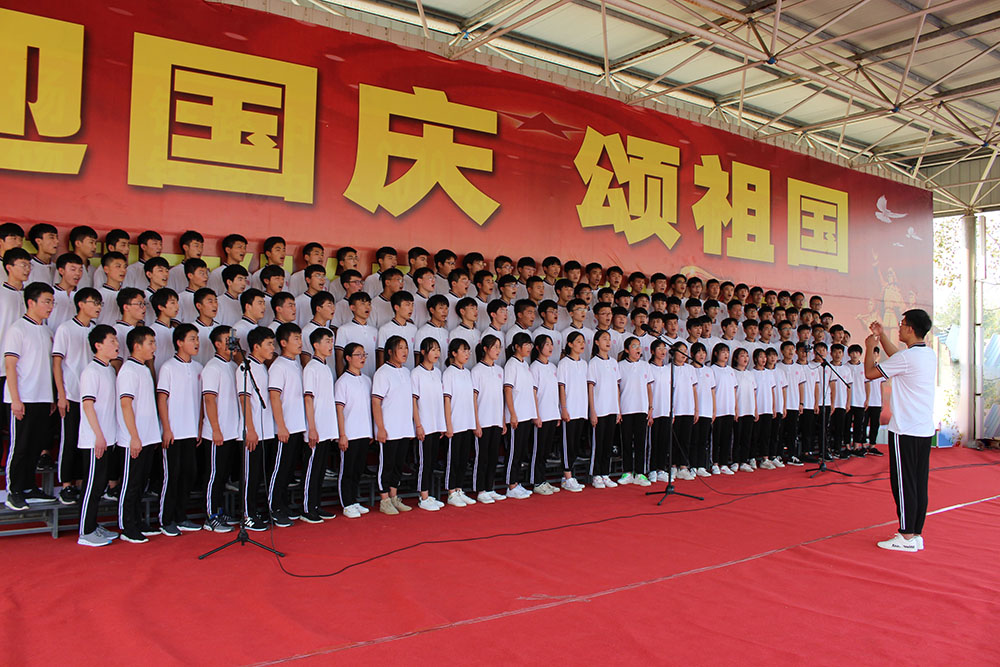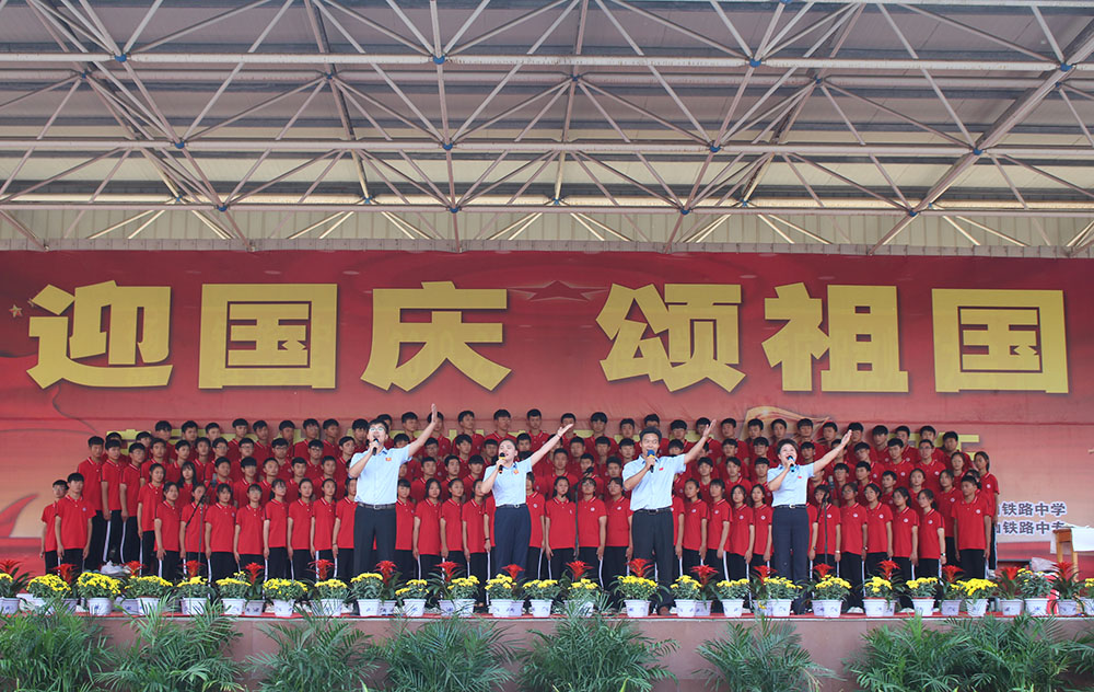 汇演在优美动人的《我爱你中国》主旋律中拉开序幕,随后,各年级节目有序登台展示,最后,学校全体教职工合唱《我和我的祖国》、《歌唱祖国》,全校师生挥动国旗,齐声高歌《歌唱祖国》,激昂豪迈的歌声响彻云霄,把整个汇演活动推向了高潮。本次“迎国庆,颂祖国”汇演活动分为大合唱和诗朗诵两种形式,东西校区汇演的整个过程中,我校全体师生专心专注,高度投入,诗歌朗诵深情感人,大合唱激情澎湃。我校广大师生通过本次“迎国庆,颂祖国”庆祝活动,表达了对祖国的赤诚热爱和由衷祝福,同时也展示了铁中人走进新时代昂扬向上、奋发有为的的精神风貌。