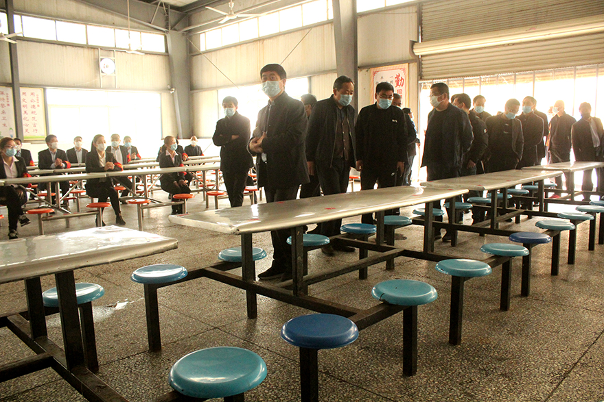 参会人员随后实地查看学校体温监测点、防疫制度、隔离室、餐厅分批就餐、消杀设备等,与会同志就防疫期间的学校工作给予高度评价。