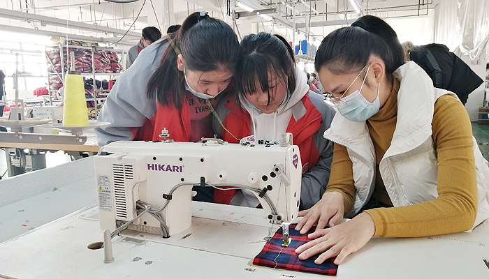 2020年11月12日,砀山县铁路中等专业学校中职一年级服装专业的学生到合作企业进行生产过程体验学习。