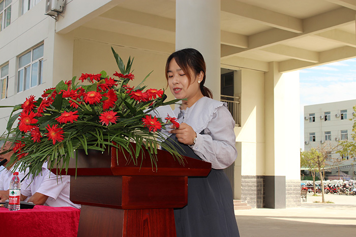 接着,新教师代表黄彤上台发言,作为初登工作岗位的新老师,黄老师青春洋溢,满怀热情。高三教师代表朱凤敏老师上台发言,她们一起对所有高中的学子们寄予了最深切的期望。