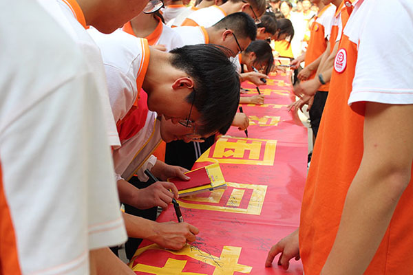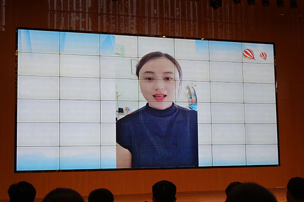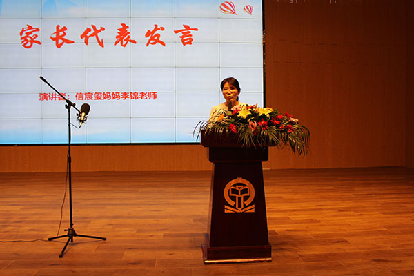 高二(1)班信宸玺同学的妈妈作为家长代表发言,殷殷嘱托:“作为十八岁的青年,要学会独立思考,追求君子之交淡如水的友谊,胜不骄,败不馁,以良好的心态面对学习与生活。”外地家长纷纷以视频的形式向孩子们表达自己的心声,向老师表达感谢。陈创宇同学和学生舞蹈队表演了精彩的手势舞歌曲《感恩的心》。20位学生代表手捧鲜花给与会家长献花,深情拥抱,敬献决心书。感人至深,催人泪下的名场面诞生。