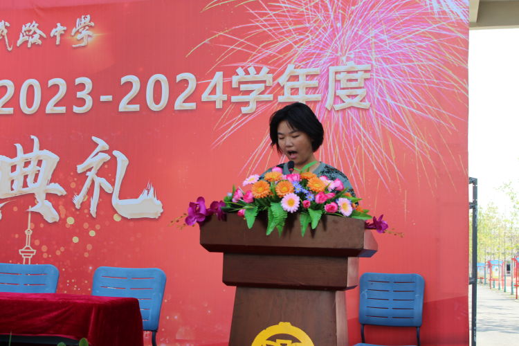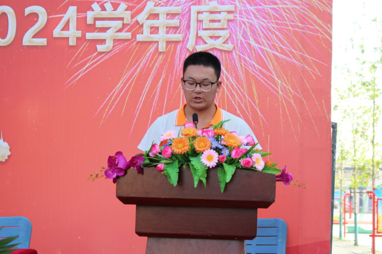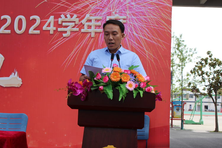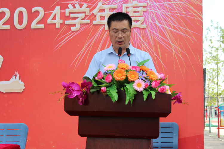 接着,高中部校长作“心向阳光赴山海,梦想起航再破浪”主题讲话。在讲话中,首先回顾了铁中办学成绩,上一学年铁中在历次联考、2023年高考及学业水平考试中所取得的佳绩,并对上一学年获得优秀的先进个人和先进集体提出了表彰。“没有从天而降的英雄,只有挺身而出的凡人”,铁中一切成绩的取得,源于铁中师生“团结一心,和衷共济,奋力拼搏,精准细微”;源于铁中的班主任“夜以继日,呕心沥血,精心施教,悉心指导”;源于铁中的教师们“敬业爱岗,勇于担当”;源于铁中人“迎朝阳、伴晚星,于平凡中创造不平凡的”可贵品质。校长在讲话中再次明确了铁中的目标和愿景,即“在传承铁路学校优秀学校文化和价值观的基础上,不断实践探索和创新,通过实施“精细管理、精准教学、精心服务、自主管理、激情德育、多元培养”等策略,全面贯彻党的教育方针,落实“五育并举”、“立德树人”的根本任务,培养身心两健、德智双全、多元融通、学创俱能、充满自信、积极奉献、气质优雅的具有国家情怀、世界眼光的高素养人才;成就德艺双馨、学养深厚、担当负责、勤奋爱生、情趣高雅的优秀教师;办成一所让远行的人牵挂,让在校的人感恩,让师生成就生命精彩,实现生命价值的一所:学生热爱、家长满意、社会认可、同行尊重的优质高中”。并为实现这一愿景,对老师和同学分别提出了不同的期望和要求。希望老师们能够增强责任感和使命感,拓展学识,提升魅力,提高教育教学水平和业务能力,出色完成“立德树人”的光荣任务。同时,从“铸就信念、确定梦想、明确责任、丰富内涵、敬畏规矩、强化安全”六个方面对学生的学习、生活、价值观、人生目标等提出了明确而又具体的要求,并对每一项要求做了详尽的解读。发言最后,校长特别强调:面对新学年,新学期,我们一定要以“天生我材必有用,千金散尽还复来”的自信,“吹尽黄沙始到金”的毅力,“咬定青山不放松”的坚韧,去迎接人生风雨的洗礼。