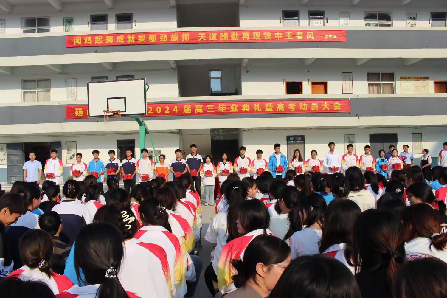 跨越日月星辰,历经四季流转,走过翰墨飘香,领略毓秀风光。相聚于金秋九月,我们在夏日作别。6月6日上午,砀山铁路中学2024届高三毕业典礼暨考前动员大会在篮球场隆重举行。高中部沙校长、张校长与会,团支部于书记,高三年级王主任、邵主任、程主任和高三年级全体师生整装齐聚,共同见证属于高三学子的荣耀时刻,为青春助力,为高考壮行。