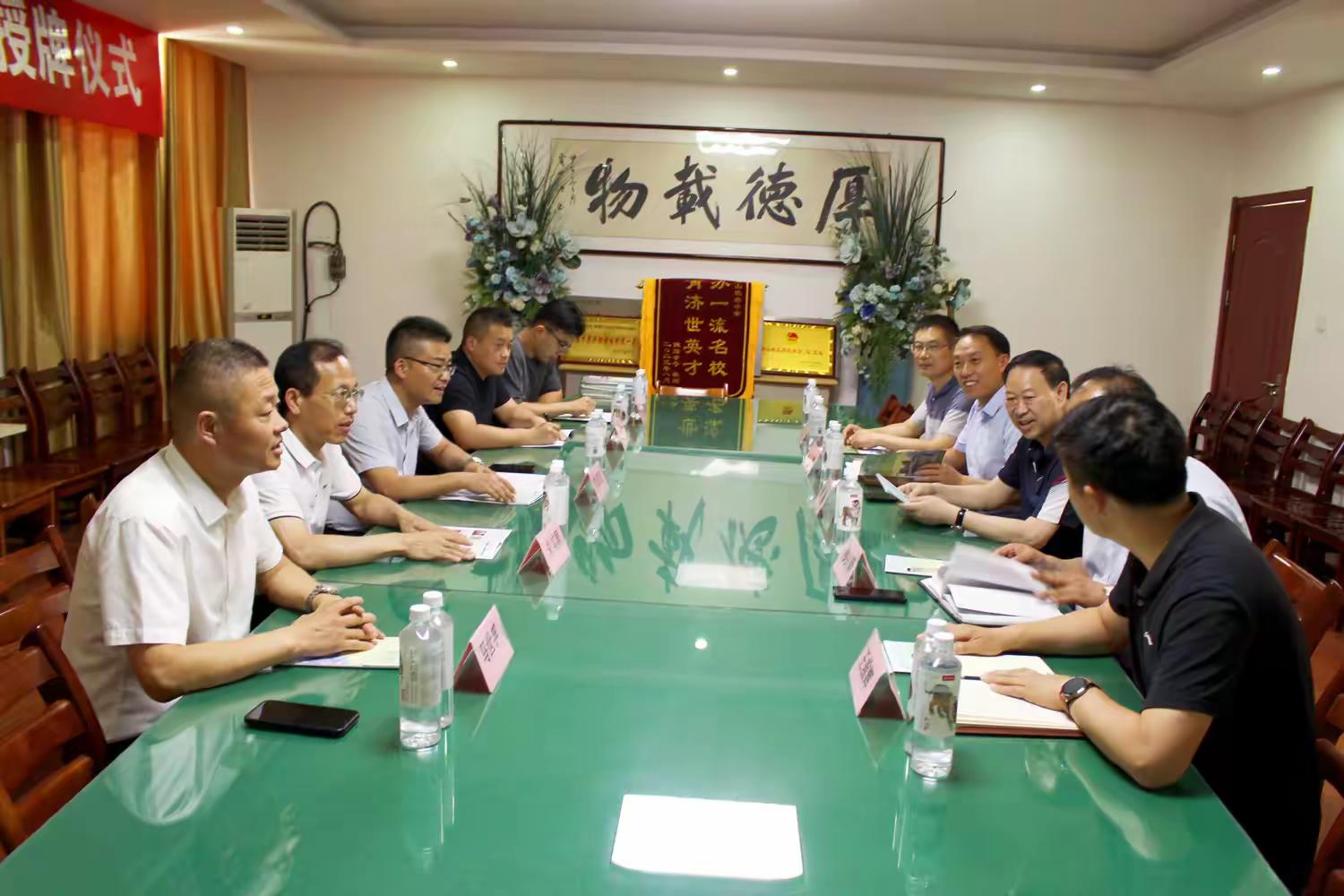 仪式的最后,阚敏校长与众位领导深入交流,进一步洽谈合作事宜,共谋教育之新发展。砀山铁路中学办学20多年来,由小变大,由弱变强,尤其是近几年实现了跨越式发展,教育教学质量不断提高,各方面设施不断新建,师资力量不断补强。在阚敏校长为核心的领导集体带领下,在高校“优秀生源基地”的加持下,砀山铁中这块教育的品牌,正逐步成为皖北教育的一颗熠耀明珠。