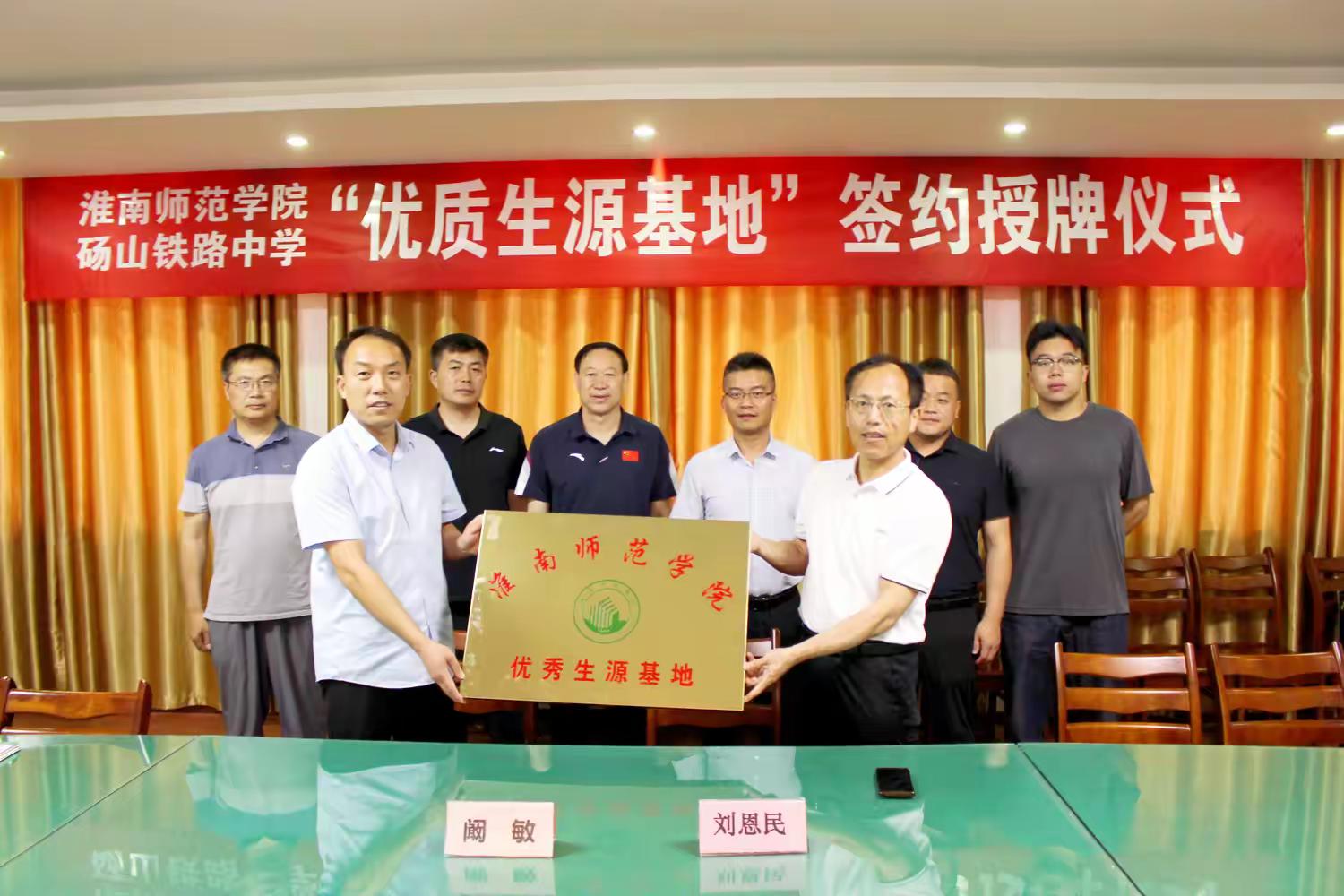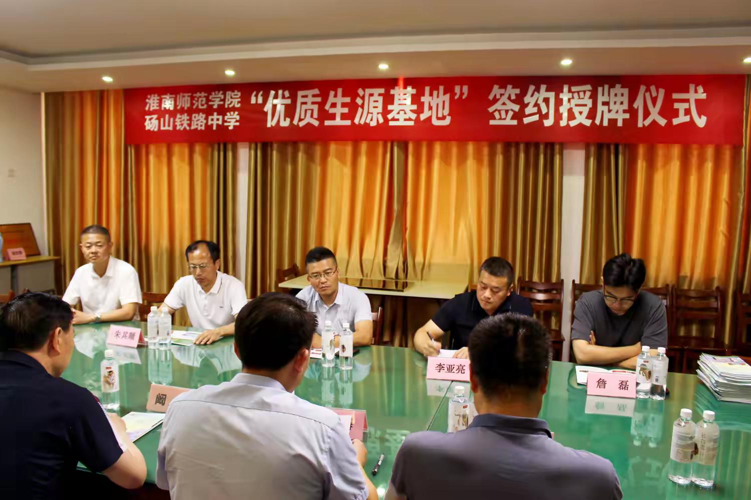 2024年6月21日上午,淮南师范学院“优秀生源基地”授牌仪式在砀山铁路中学高中部行政楼会议室隆重举行。