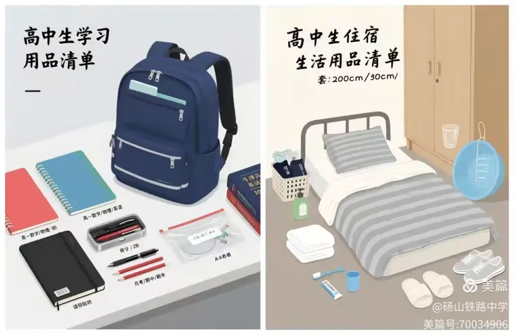 2.生活用品的准备:住宿生准备床上用品(我校寝室床铺标准尺寸:190厘米×90厘米)、衣架、脸盆、毛巾、牙具、洗发液、换洗衣物、浅色运动鞋、水杯等。