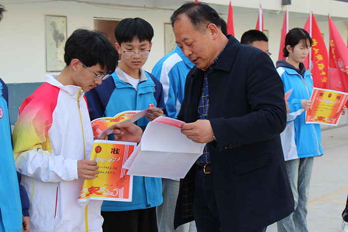 随后,王卫主任宣读各类获奖学生名单和获奖班级并组织颁奖。大会特邀胡伟主任、李厚忠主任、孙伟主任给获奖学子颁发奖状、奖品,沙校长亲自颁发优秀班级奖项。通过表彰先进,激发学生的上进心,为全体学生树立学习的标杆。