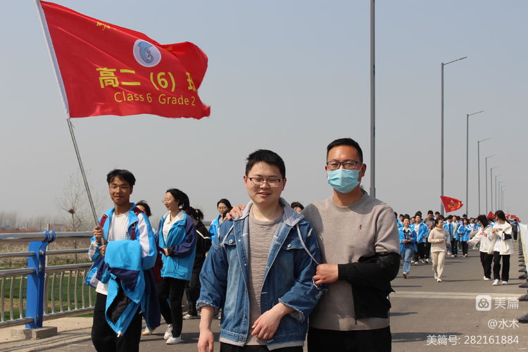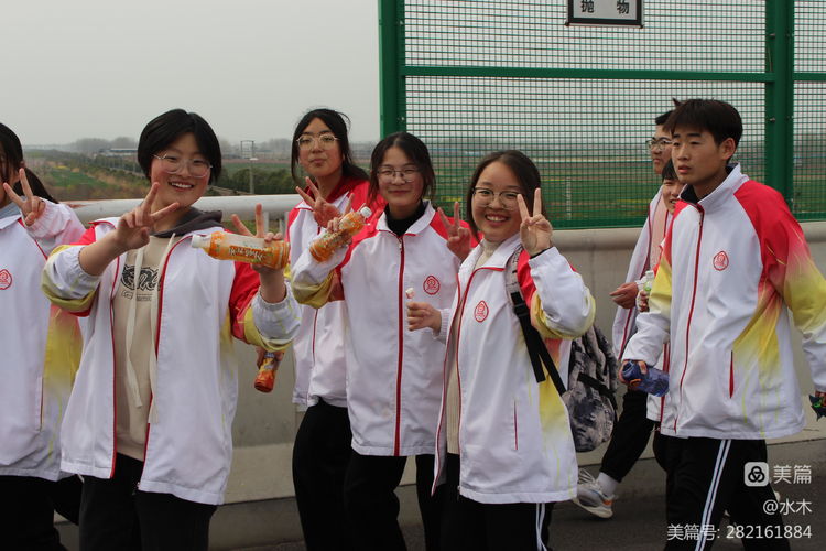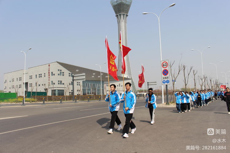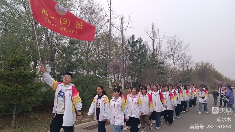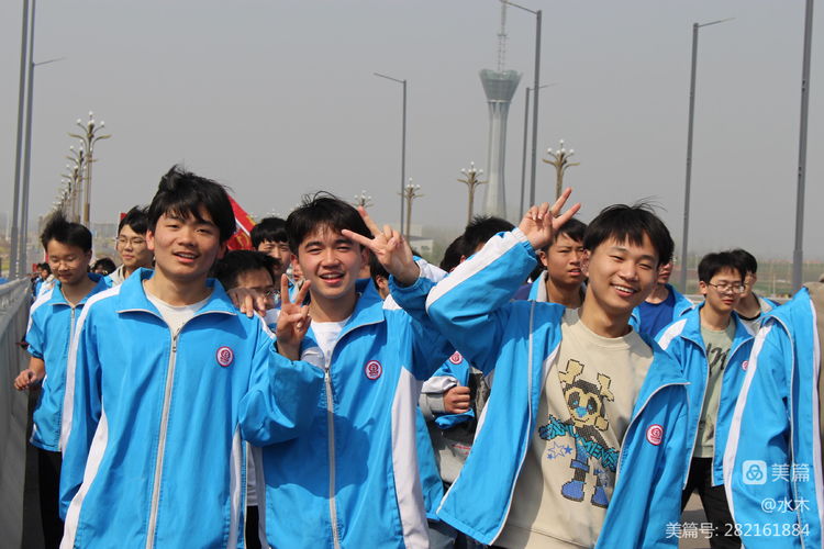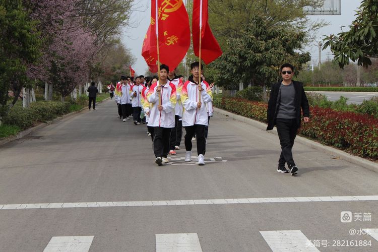 各班级队列整齐,按照班序进发,一路经过振兴路—中原路—人民西路—电视塔—梨都大道—陇海铁路大桥,到达终点高铁站。往返全程超过30华里,风华正茂的少年们个个活力四射,兴高采烈,欢歌笑语。每个班级高举班旗,高唱班歌,高呼口号。全程桃花含笑,梨花胜雪,紫李吐蕊,樱花烂漫,同学们在磨练意志的同时,近距离地体验了家乡之美。