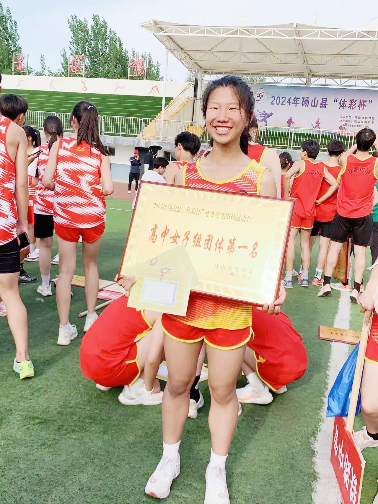 青春谱写精彩,汗水铸就辉煌。2024518---19日,由县教育局主办的2024年砀山县“体彩杯”中小学田径运动会在砀山铁路学校田径场成功举办。经过紧张激烈的角逐,砀山铁路中学高中部代表队喜获佳绩,荣获高中组男女团体总分第一名,女子团体总分第一名、男子团体总分第二名的好成绩。同时,张帅、郑超老师分别获得县优秀教练员称号。高二(6)班甄珈傲同学荣获高中男子组100米第一名,并打破了县田径运动会高中男子组100米记录(成绩10.76秒);高二(17)班曹梦同学荣获高中女子组跳远第二名,并打破县田径运动会高中女子组跳远记录(成绩4.85米);高二(18)班朱梓烨同学荣获高中男子组跳高第一名,并打破了县田径运动会高中男子组跳高记录(成绩1.69米);高二(18)班李梦柳同学荣获高中女子组400米第一名;高二(13)班焦宝印同学荣获高中男子组800米第一名;高二(11)班张佳梦同学、高二(15)班陶薇同学包揽高中女子组800米第一名和第二名;高二(19)班张子怡同学荣获高中女子组3000米第一名;高二(9)班吴姗妮同学荣获高中女子组3000米第三名;高二(14)班孙佳乐同学荣获高中男子组1500米第三名;在4×100米接力比赛中:高二(8)班秦军营、高二(13)班焦宝印、王殿尧、高二(6)班甄珈傲4名同学荣获男子组第三名;高二(17)班曹梦、高二(11)班张佳梦、高二(18)班李梦柳、高二(15)班陶薇4名同学荣获女子组第一名。