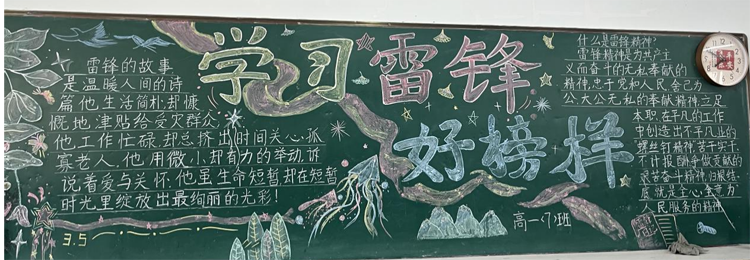 “雷锋精神驻心间,青春行动在校园”,高一的同学们则用色彩斑斓的黑板报,生动展现了这一主题。这些充满创意的黑板报作品,不仅美化了校园环境,更让雷锋精神如春风般吹进了每位同学的心田。