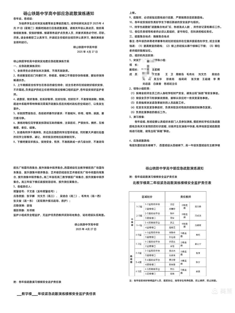 为进一步强化师生安全意识,让师生掌握安全防护知识、逃生技能,提高师生对突发事故的应对能力,我校高中部于2025年4月29日上午组织开展全校师生安全疏散演练活动。