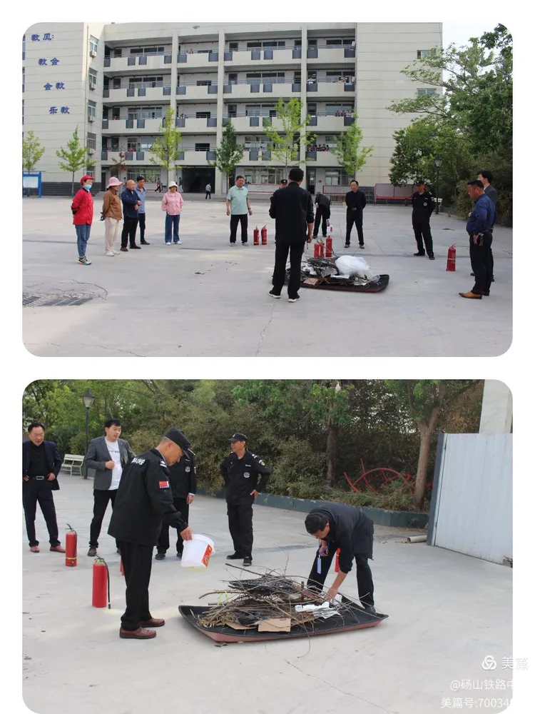 2025年5月13日上午7:10,砀山铁路中学高中部德育处、团委组织安防人员进行消防知识讲解及演练活动。德育处樊主任、团委于书记率领全校生活老师、门卫和食堂等相关工作人员参加本次演练活动。