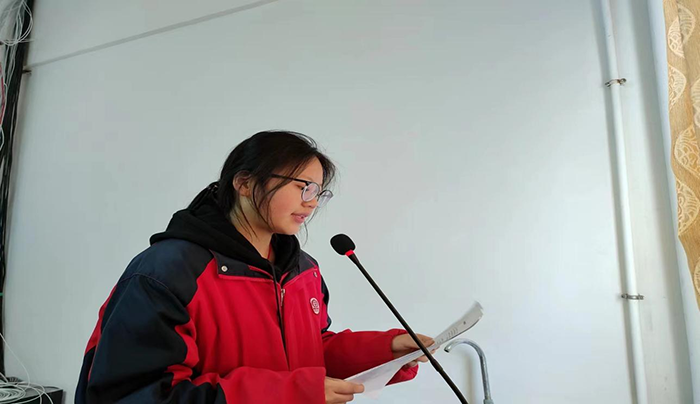 在4月5日校广播会上,高二(1)班学生代表张炫晔同学向全体师生做了“缅怀先烈,报效祖国”主题讲话,她回顾过去,立足当下,展望未来,号召同学们要珍惜当下幸福生活,把握青春年华,踔厉奋发,勇毅前行!